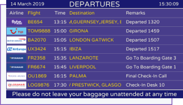 FIDSnet uses the real time data of the AFIDS software to display, in a configurable format, relevant information on screens around the airport.